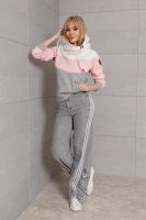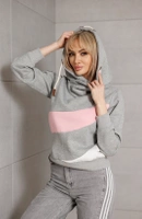 Gruba trzykolorowa bluza damska biały-róż-szary