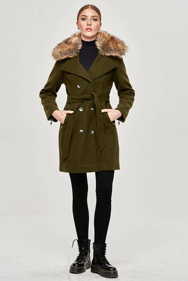 Damska kurtka futro z kołnierzem brązowa (gsq2166)