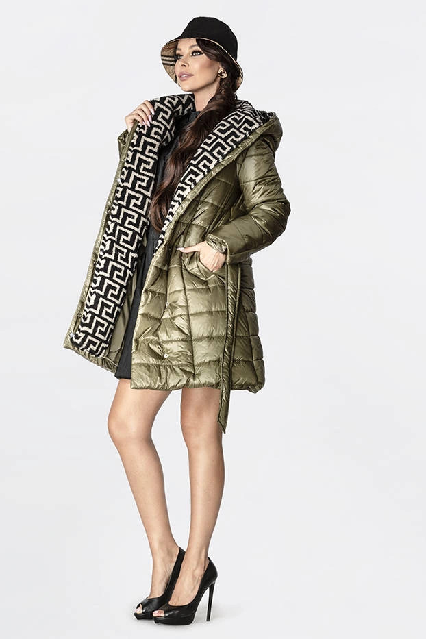 Lekka kurtka damska zimowa z ocieplanym kapturem khaki (omdl-019)