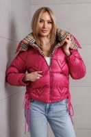 Kurtka przejściowa z podszewką w kratę w kolorze fuksji
