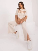 Uniwersalny beżowy komplet bluzka i spodnie