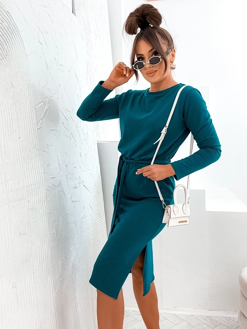 Bawełniana klasyczna sukienka z długim rękawem morska