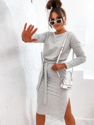Bawełniana klasyczna sukienka z długim rękawem szara