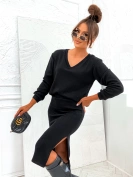 Sukienka z kopertowym dekoltem czarny z niebieskim