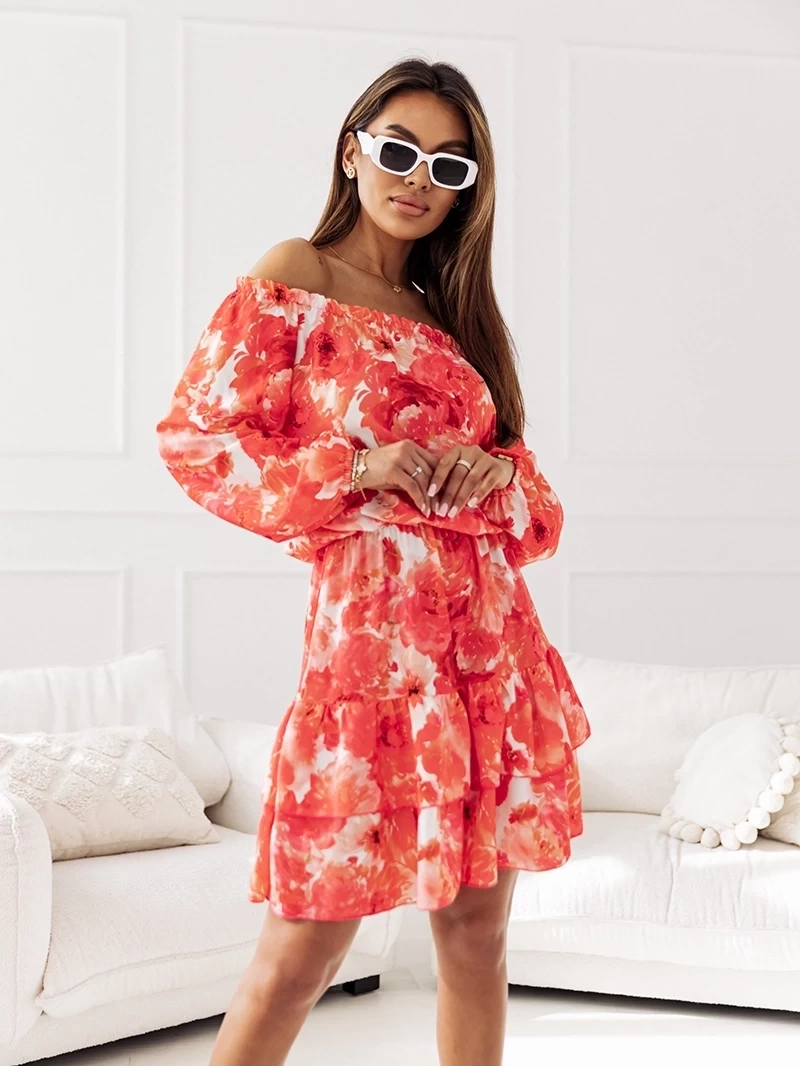 Czerwona sukienka z odkrytymi ramionami