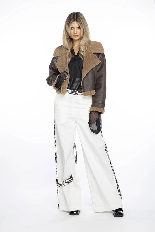 Krótki trencz z ekoskóry zimny beż