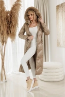 Krótka błyszcząca kurtka ze stójką w kolorze cappucino