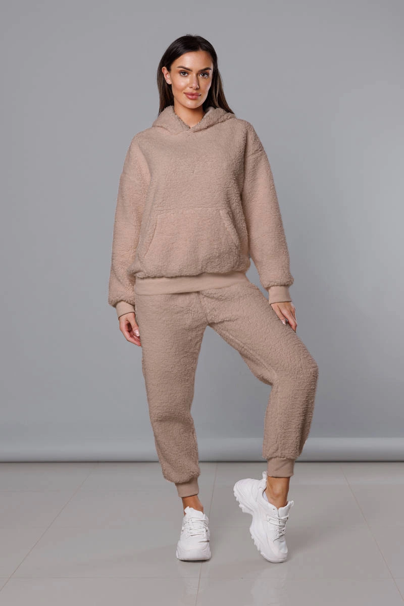 Ciepły damski komplet dresowy w kolorze beżowym