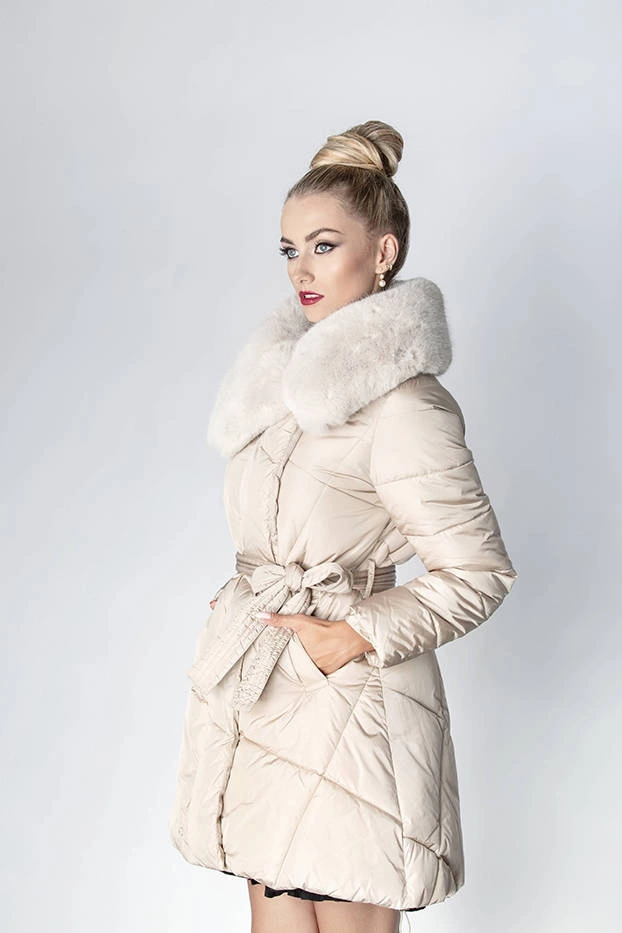 Kurtka futrzana ze stójką ecru (gsq2228)
