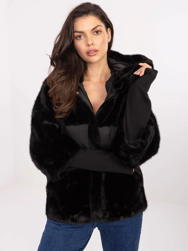 Taliowana zimowa kurtka z kapturem czarna