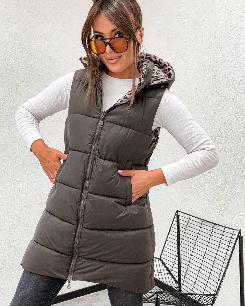 Długa kamizelka typu 2w1 czekolada-panterka