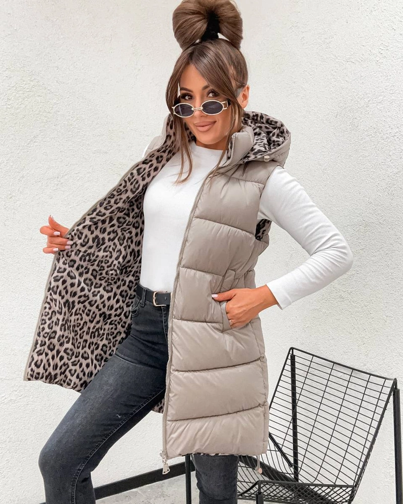 Długa kamizelka typu 2w1 beż-panterka