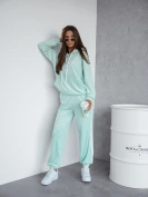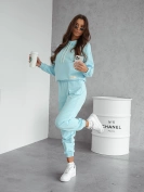 Komfortowy jasnobeżowy komplet damski bluza + szerokie spodnie