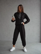 Komfortowy ciemnobeżowy komplet damski bluza + szerokie spodnie