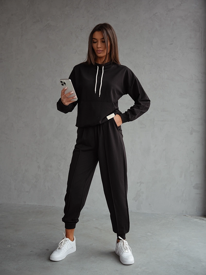 Zestaw plus size bluza + spodnie dresowe welur czarny