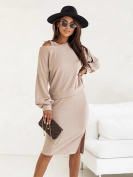 Dopasowana sukienka z bluzą plus size beż-czarny