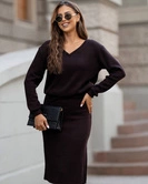 Ciemnoniebieski komplet damski sweter i dopasowana spódnica