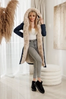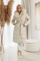 Trencz z ekoskóry z napami i paskiem ciepły beż