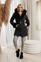 Gruba dwustronna kurtka zimowa damska czarny-ecru (V768g)