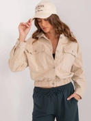 Beżowa luźna kurtka jeansowa z gumką na dole
