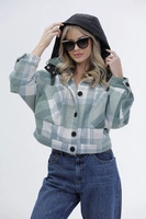 Krótka koszulowa kurtka w kratę w kolorze zielonym