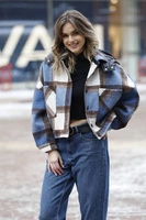 Krótka koszulowa kurtka w kratę w kolorze niebieskim