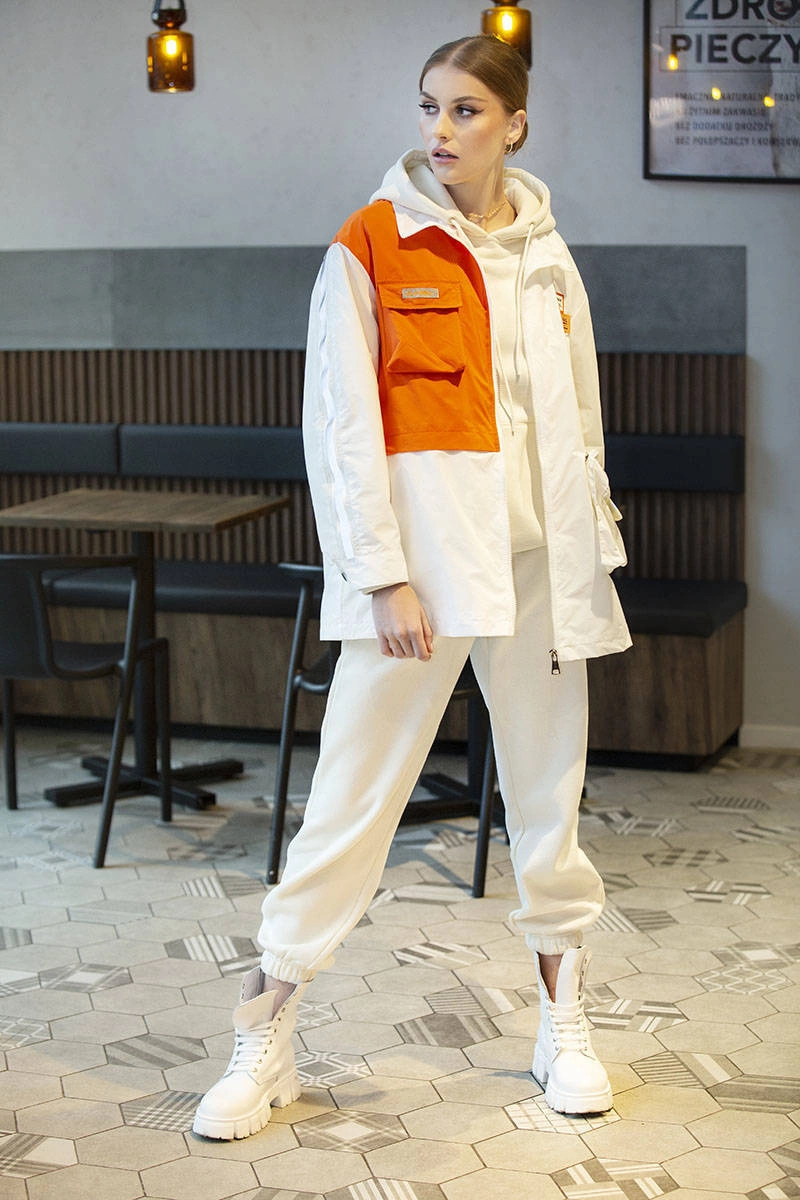 Damska kurtka wiatrówka biało/pomarańczowa (ag3-010)