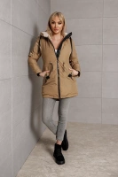 Karmalowa pikowana kurtka damska ze ściągaczami przy rękawach