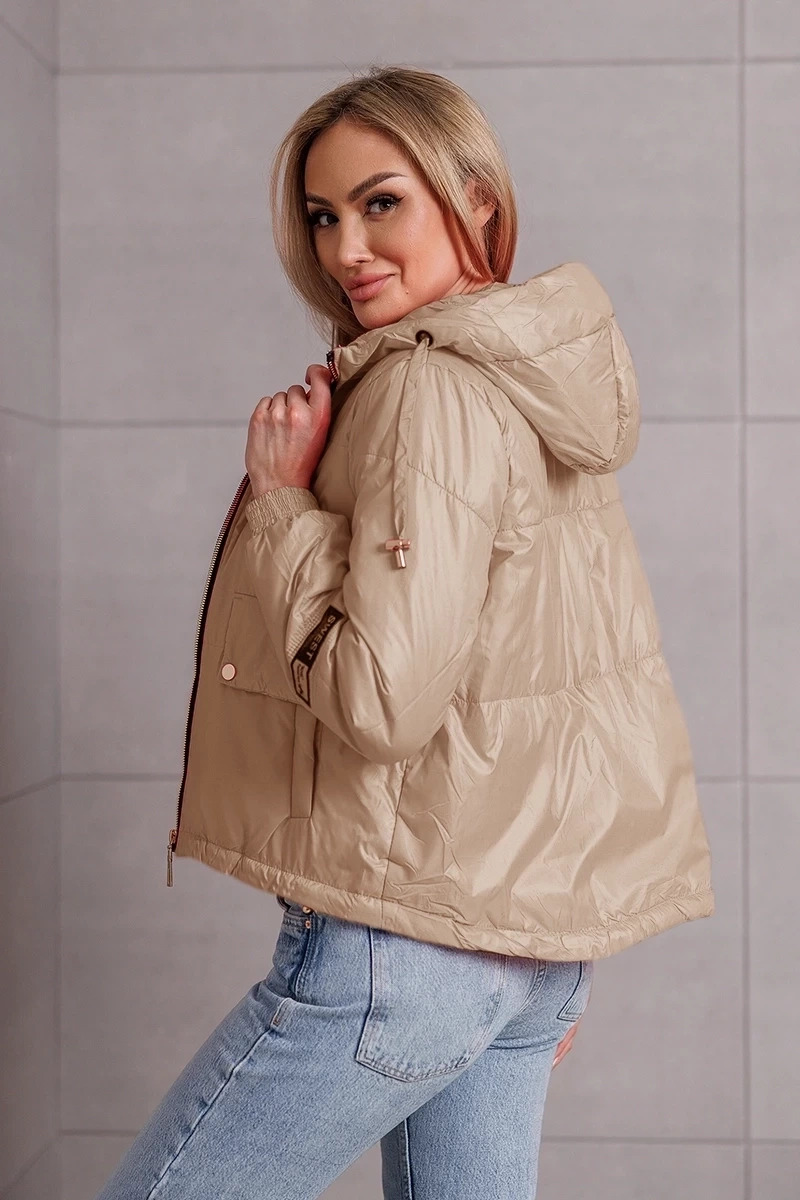 Uniwersalna beżowa kurtka przejściowa z odpinanym kapturem