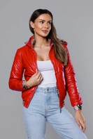 Krótki damski płaszcz z kapturem czerwony (gsq2311)