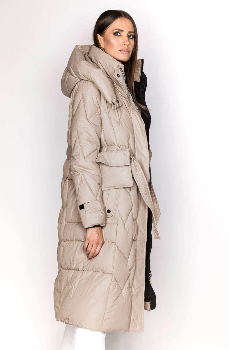 Puchowa kurtka ze stójką i kapturem beżowa (ag2-j82)
