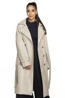 Trencz z ekoskóry z napami i paskiem ciepły beż