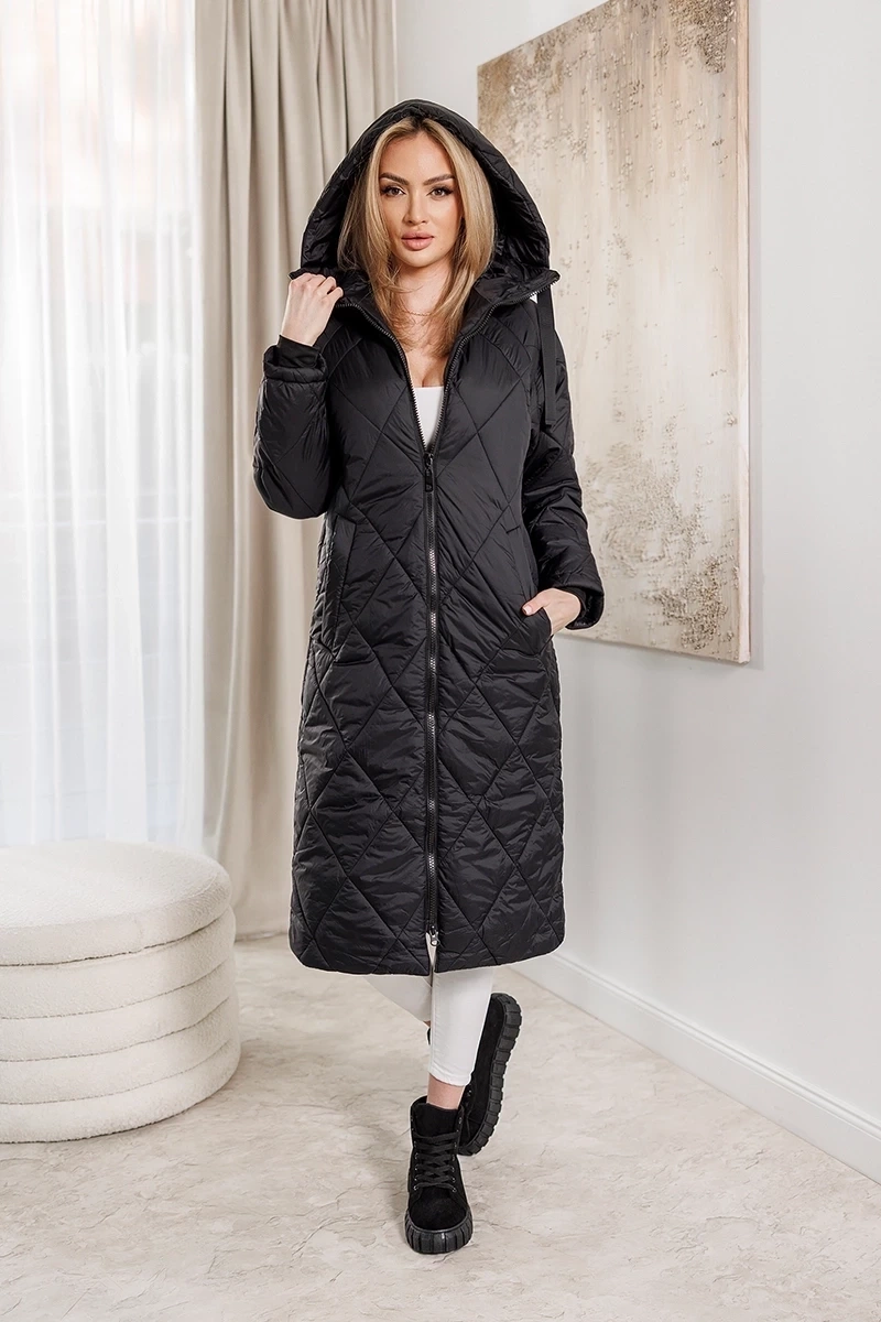 Czarna gruba kurtka zimowa plus size do kolan