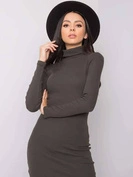 Ciemnobeżowa sukienka podkreślająca sylwetkę