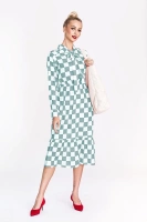 Biało-niebieska sukienka z rozkloszowanym dołem