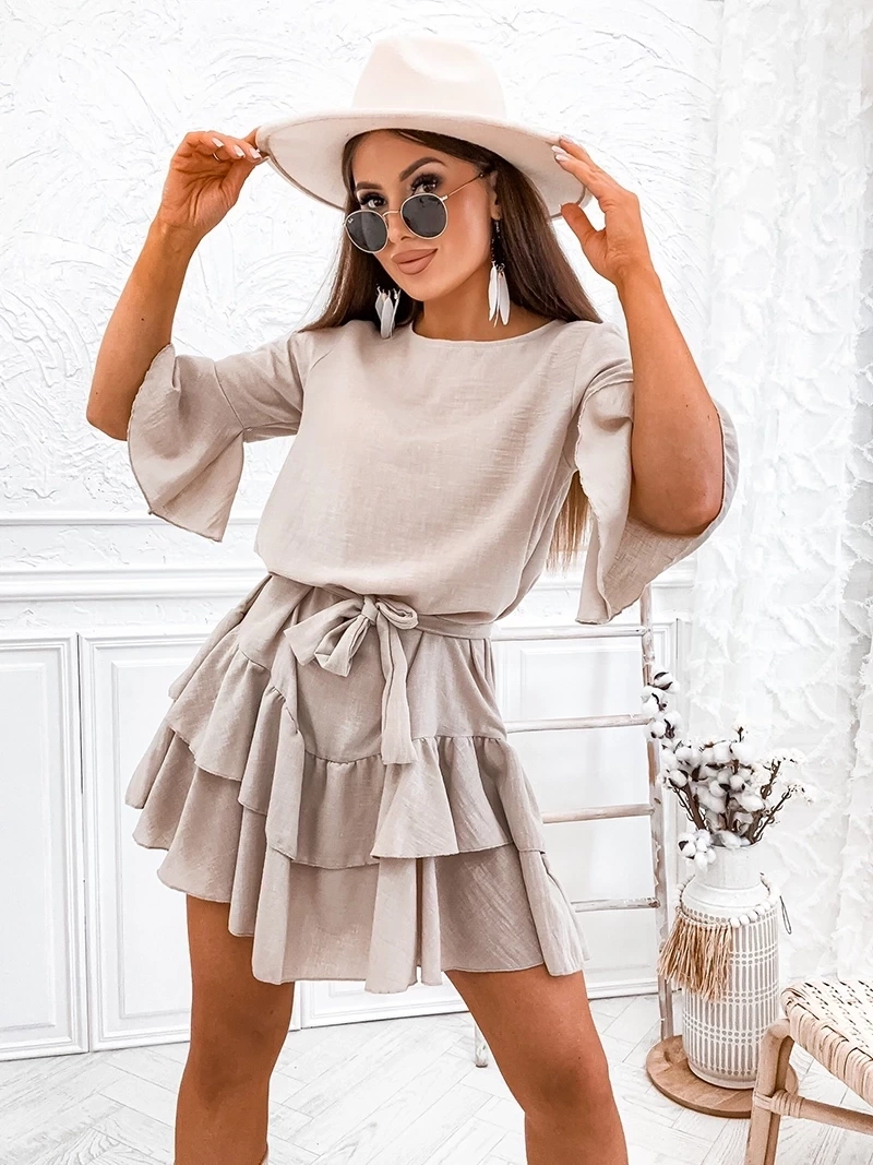 Bawełniana sukienka plus size z rękawem 3/4 cappuccino