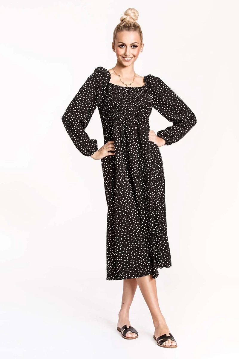Stylowa sukienka z bufiastymi rękawami czarna