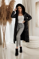 Pikowana kurtka z paskiem w talii czarna