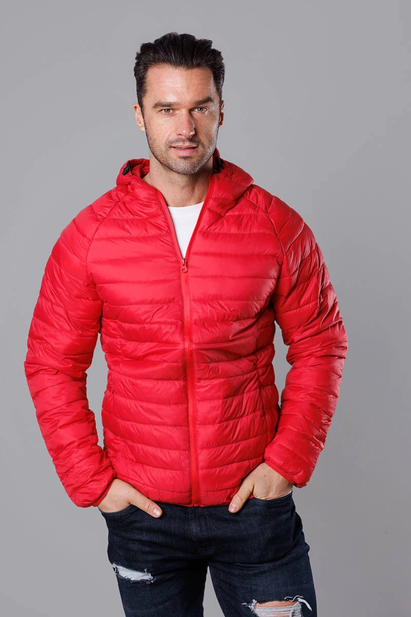 Czerwona pikowana kurtka męska z kapturem