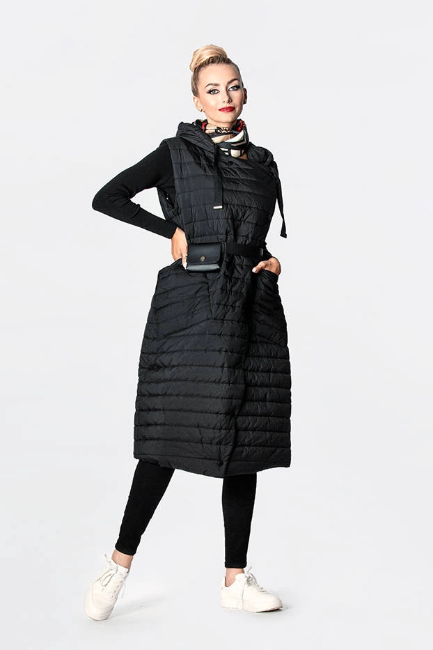 Taliowana kurtka z paskiem czarna