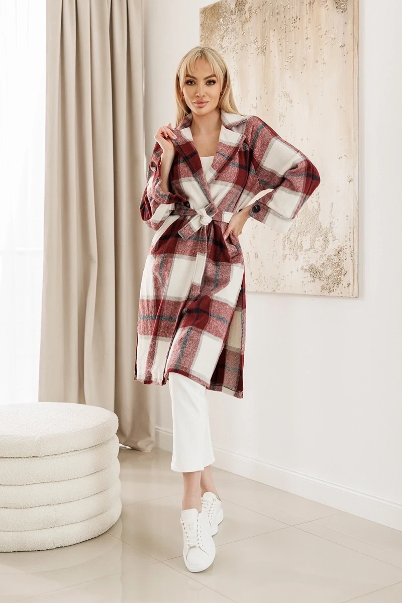 Krótki damski płaszcz z kapturem czerwony (gsq2311)