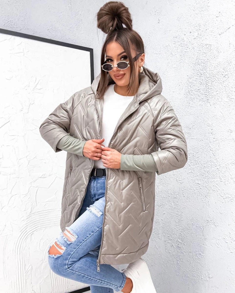 Przejściowa pikowana kurtka dzianinowymi ściągaczami beż