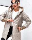 Przejściowa pikowana kurtka dzianinowymi ściągaczami beż