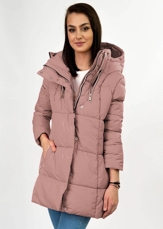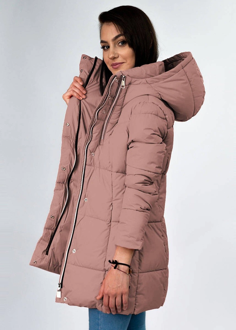 Opinie o Krótka kurtka damska zimowa z zamkami antyczny róż (7750)