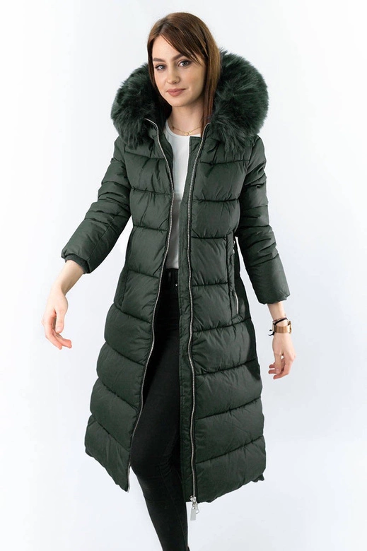 Ciemnozielona gruba kurtka zimowa plus size do kolan