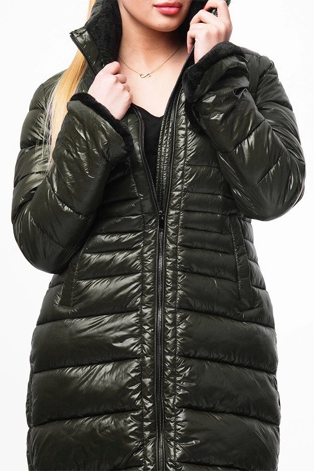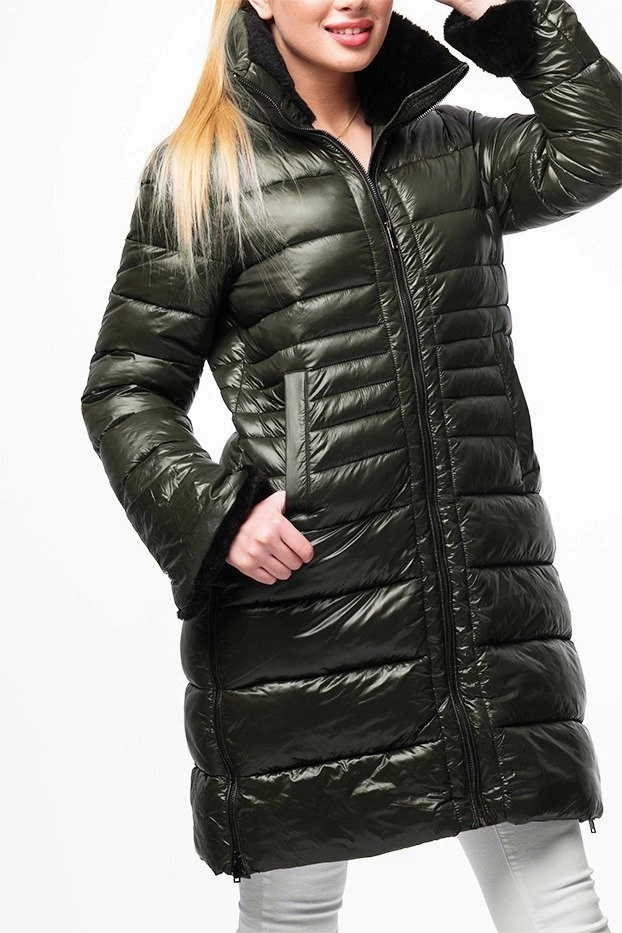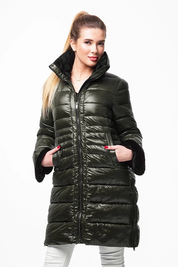 Zimowa kurtka damska z futrzanym kołnierzem khaki