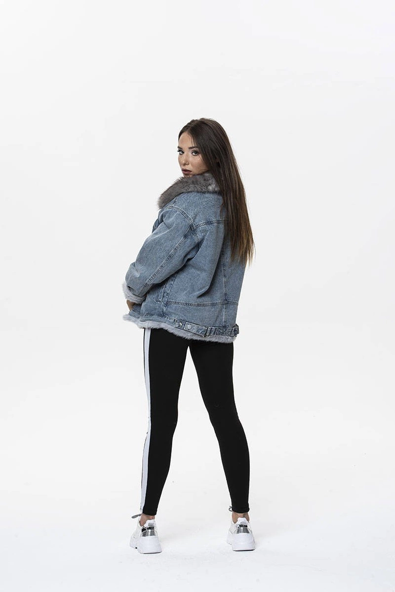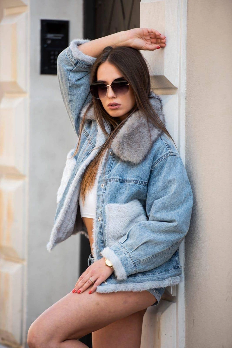 Stylowa i komfortowa kurtka jeansowa na misiu o luźnym kroju, zapinana na napy. Posiada kołnierz z odpinanym futerkiem oraz dwie kieszenie. Dół kurtki wyposażony w paski zwężające, umożliwiające dopasowanie do sylwetki. Idealna na chłodniejsze dni!