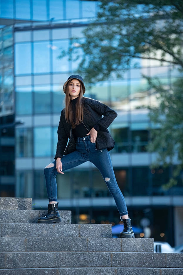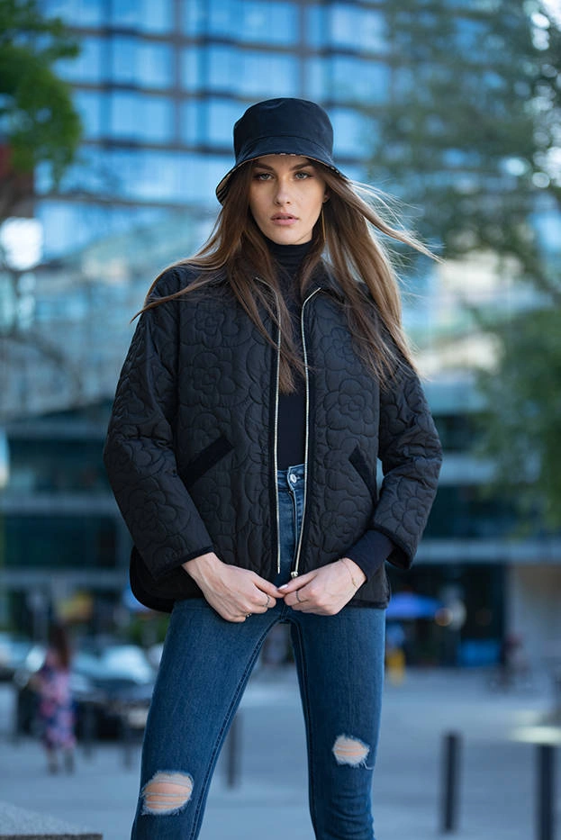 Cienka kurtka damska z ozdobnym pikowaniem czarna (jin226)