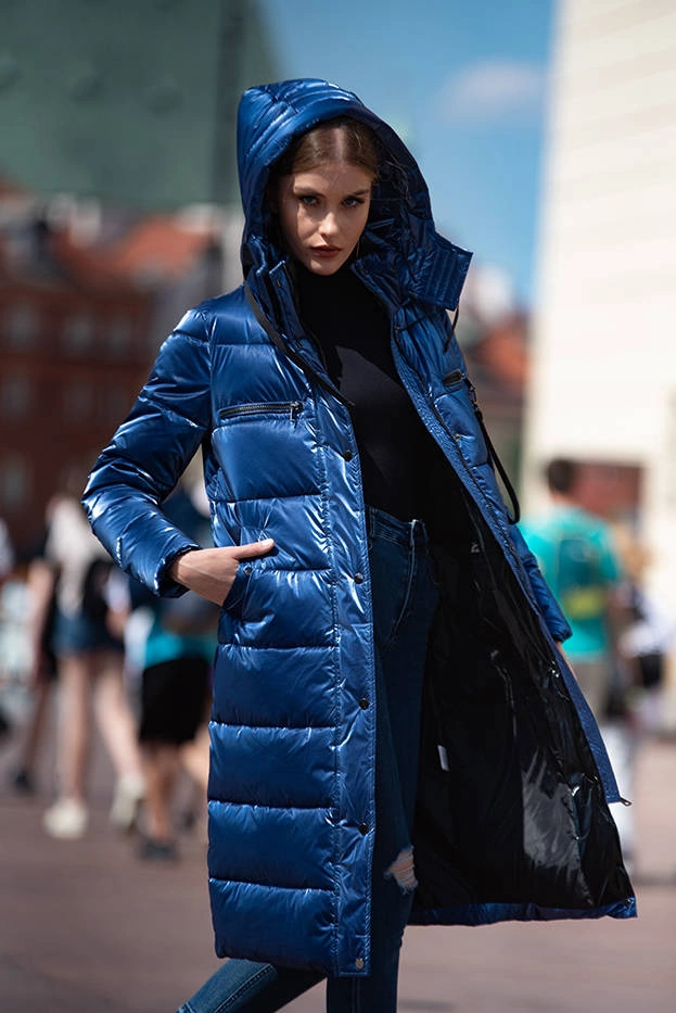 Opinie o Damska błyszcząca kurtka puchowa granatowa (omdl-020)