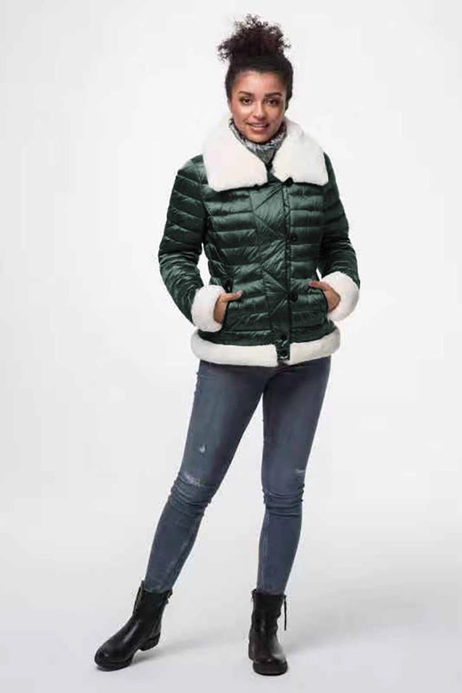 Opinie o Kurtka damska z futrzanym kołnierzem ciemnozielona (j9-008)